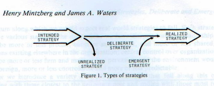 Henry Mintzberg and James A. Waters wrote a 16-page article for Strategic Management Journal, Vol. 6, No. 3 (Jul. – Sep., 1985), titled Of Strategies, Deliberate and Emergent.